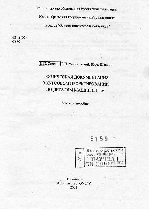 Книга: П.П. Сохрин, Е.П. Устиновский, Ю.А. Шевцов - Техническая документация в курсовом проектировании