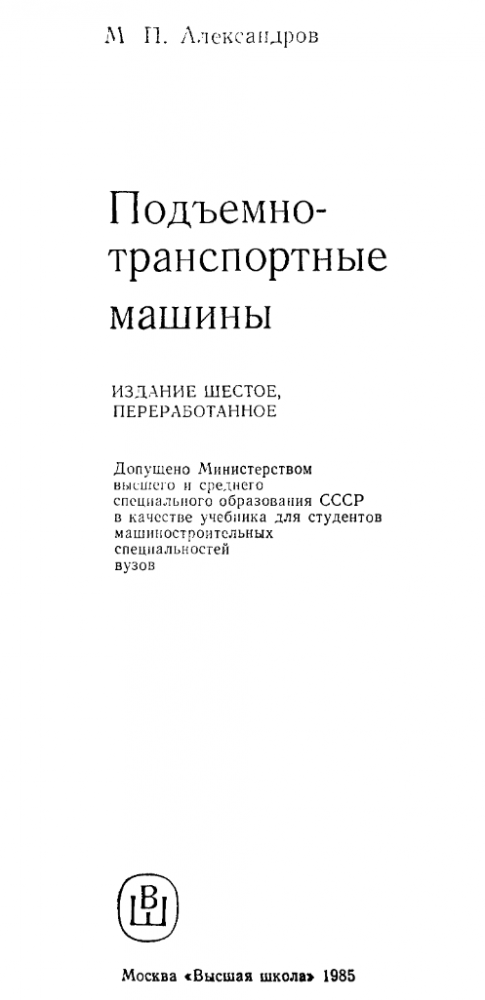 Для студентов МГТУ им. Н.Э.Баумана по предмету Подъёмно-транспортные машины (ПТМ)М.П. Александров - Подъемно-транспортные машиныМ.П. Александров - Подъемно-транспортные машины