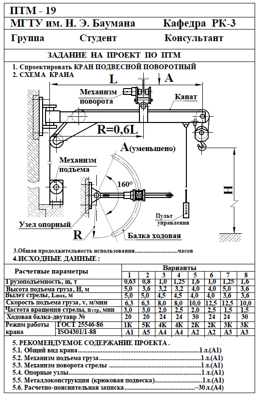 Для студентов МГТУ им. Н.Э.Баумана по предмету Подъёмно-транспортные машины (ПТМ)Проектирование подвесного поворотного крана ПТМ 19-03.00.00 ПЗПроектирование подвесного поворотного крана ПТМ 19-03.00.00 ПЗ