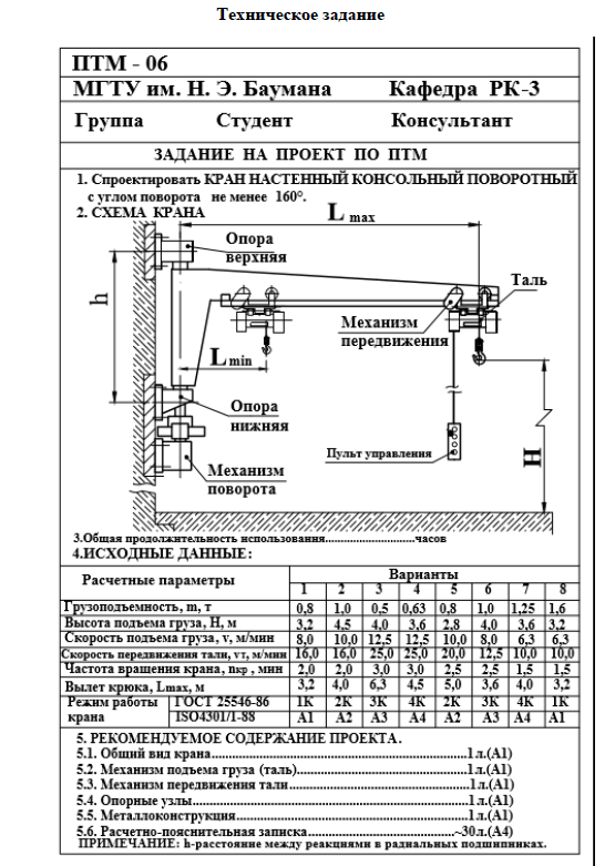 Для студентов МГТУ им. Н.Э.Баумана по предмету Подъёмно-транспортные машины (ПТМ)Кран настенный консольный поворотный ПТМ 06.05.00.00 ПЗКран настенный консольный поворотный ПТМ 06.05.00.00 ПЗ