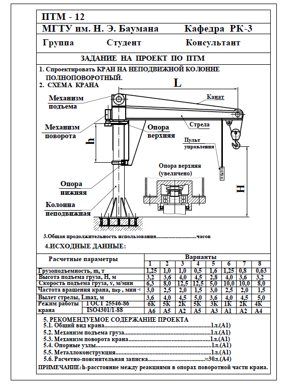 Курсовая работа 12: Кран на неподвижной колонне полноповоротный ПТМ 12.00.00 ПЗ вариант 1