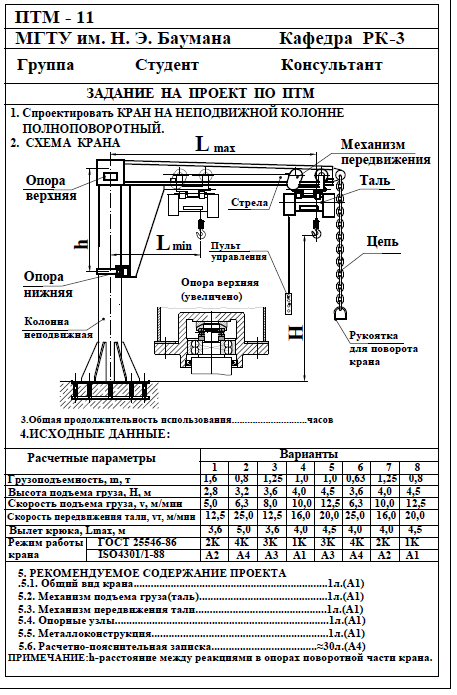 Курсовая работа 11: Кран на неподвижной колонне полноповоротный ПТМ 11-04.000.000 ПЗ вариант 4