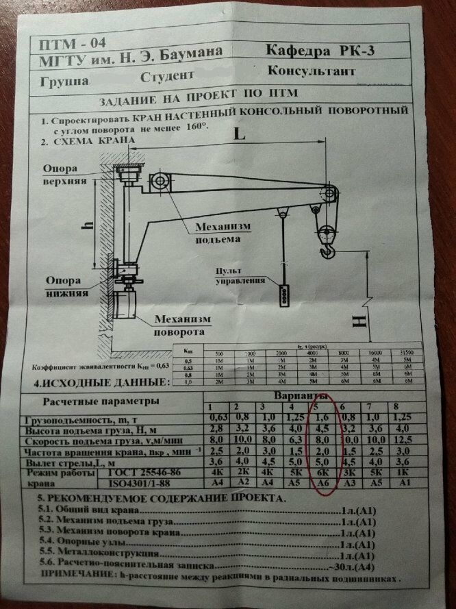 Для студентов МГТУ им. Н.Э.Баумана по предмету Подъёмно-транспортные машины (ПТМ)Кран настенный консольный поворотныйКран настенный консольный поворотный