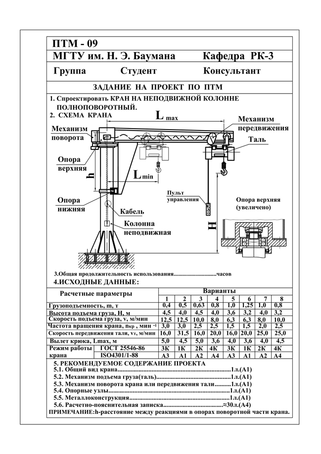 Для студентов МГТУ им. Н.Э.Баумана по предмету Подъёмно-транспортные машины (ПТМ)ПТМ Вариант 09-06ПТМ Вариант 09-06