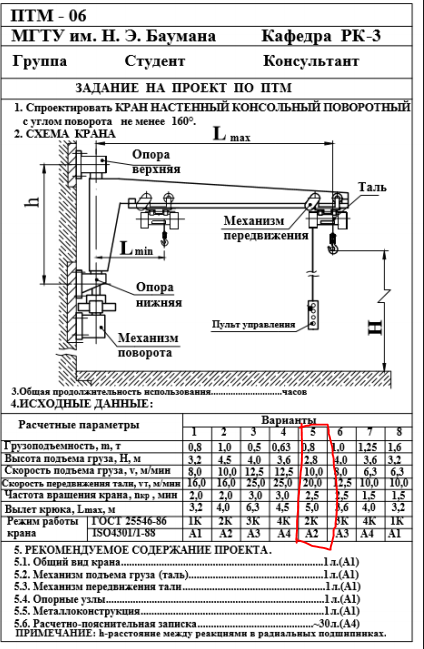 Для студентов МГТУ им. Н.Э.Баумана по предмету Подъёмно-транспортные машины (ПТМ)Кран настенный консольный поворотныйКран настенный консольный поворотный
