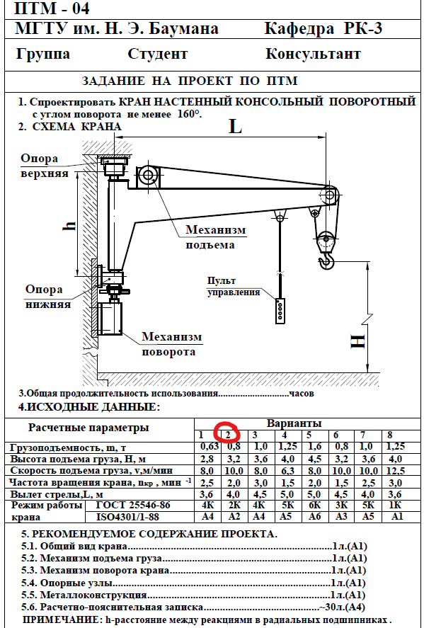 Для студентов МГТУ им. Н.Э.Баумана по предмету Подъёмно-транспортные машины (ПТМ)ПТМ 04 вариант 2 (Курсовой проект) [Белоусов]ПТМ 04 вариант 2 (Курсовой проект) [Белоусов]