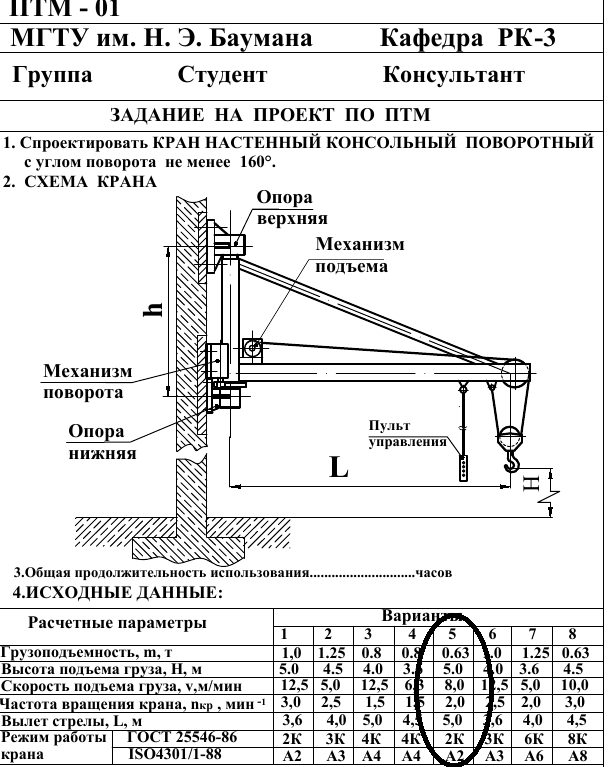 Для студентов МГТУ им. Н.Э.Баумана по предмету Подъёмно-транспортные машины (ПТМ)Задание 01_05 - Кран настенный консольный поворотный с углом поворота не менее 160Задание 01_05 - Кран настенный консольный поворотный с углом поворота не менее 160