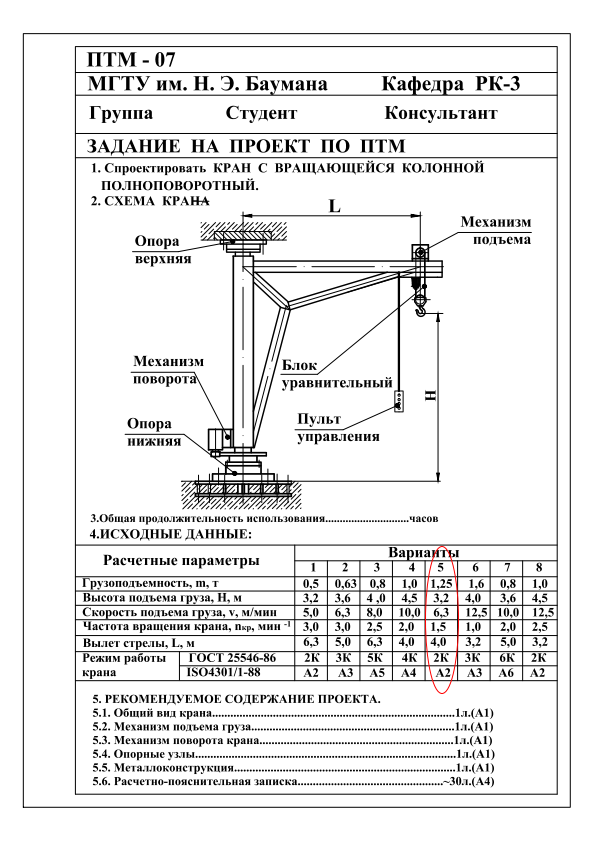 Курсовая работа 7: Кран с вращающейся колонной полноприводный вариант 5