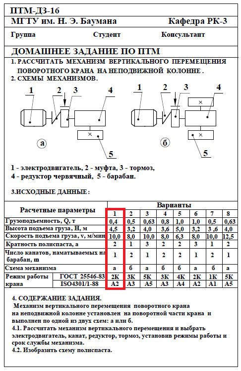 Для студентов МГТУ им. Н.Э.Баумана по предмету Подъёмно-транспортные машины (ПТМ)Расчёт механизма подъёмно-транспортной машины (ПТМ)Расчёт механизма подъёмно-транспортной машины (ПТМ)