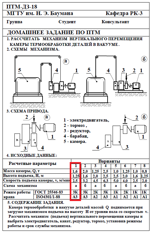 Для студентов МГТУ им. Н.Э.Баумана по предмету Подъёмно-транспортные машины (ПТМ)Расчёт механизма подъёмно-транспортной машины (ПТМ)Расчёт механизма подъёмно-транспортной машины (ПТМ)