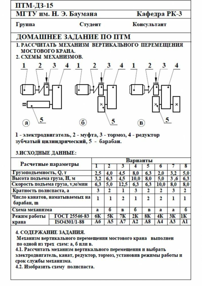 Для студентов МГТУ им. Н.Э.Баумана по предмету Подъёмно-транспортные машины (ПТМ)Расчёт механизма подъёмно-транспортной машины (ПТМ)Расчёт механизма подъёмно-транспортной машины (ПТМ)