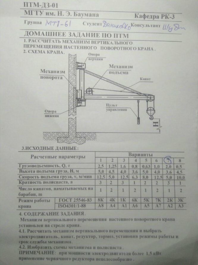 Для студентов МГТУ им. Н.Э.Баумана по предмету Подъёмно-транспортные машины (ПТМ)Расчёт механизма подъёмно-транспортной машины (ПТМ)Расчёт механизма подъёмно-транспортной машины (ПТМ)