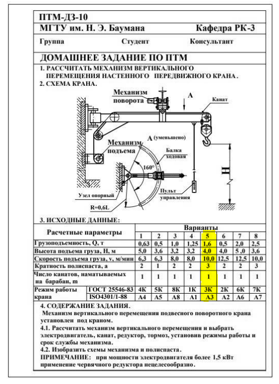 Для студентов МГТУ им. Н.Э.Баумана по предмету Подъёмно-транспортные машины (ПТМ)Расчёт механизма подъёмно-транспортной машины (ПТМ)Расчёт механизма подъёмно-транспортной машины (ПТМ)