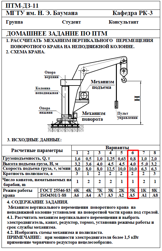 Для студентов МГТУ им. Н.Э.Баумана по предмету Подъёмно-транспортные машины (ПТМ)Расчёт механизма подъёмно-транспортной машины (ПТМ)Расчёт механизма подъёмно-транспортной машины (ПТМ)