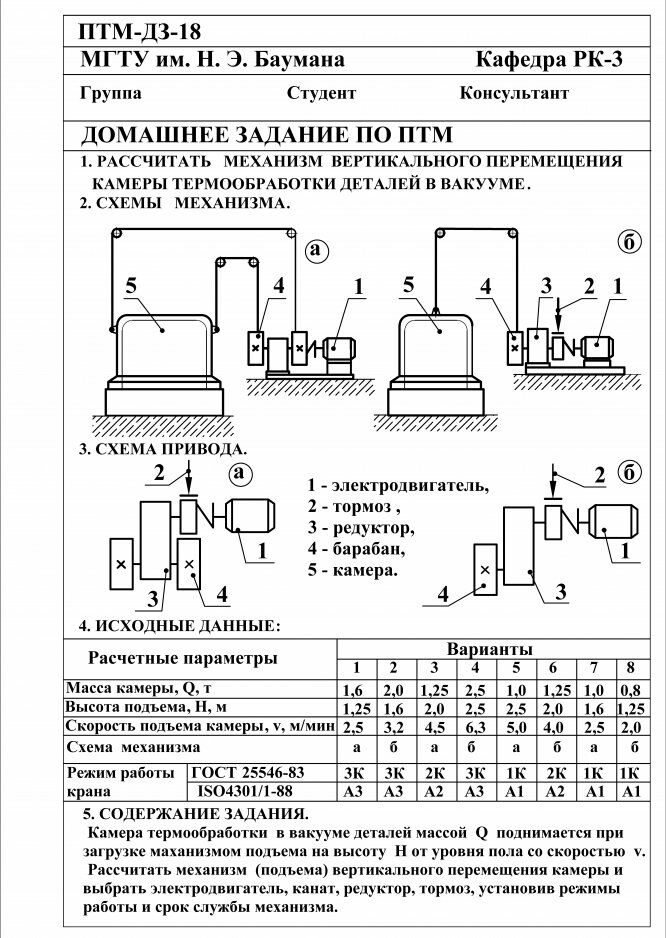 Для студентов МГТУ им. Н.Э.Баумана по предмету Подъёмно-транспортные машины (ПТМ)Расчёт механизма подъёмно-транспортной машины (ПТМ)Расчёт механизма подъёмно-транспортной машины (ПТМ)
