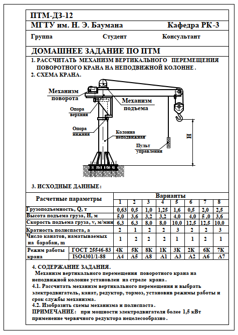 Для студентов МГТУ им. Н.Э.Баумана по предмету Подъёмно-транспортные машины (ПТМ)Расчёт механизма подъёмно-транспортной машины (ПТМ)Расчёт механизма подъёмно-транспортной машины (ПТМ)