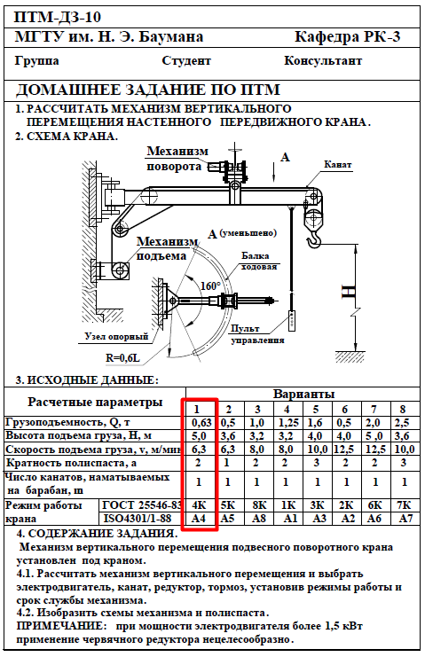 Для студентов МГТУ им. Н.Э.Баумана по предмету Подъёмно-транспортные машины (ПТМ)Расчёт механизма подъёмно-транспортной машины (ПТМ)Расчёт механизма подъёмно-транспортной машины (ПТМ)