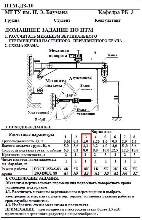 Для студентов МГТУ им. Н.Э.Баумана по предмету Подъёмно-транспортные машины (ПТМ)Расчёт механизма подъёмно-транспортной машины (ПТМ)Расчёт механизма подъёмно-транспортной машины (ПТМ)