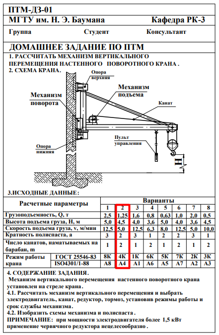 ДЗ 1: Расчёт механизма подъёмно-транспортной машины (ПТМ) вариант 2