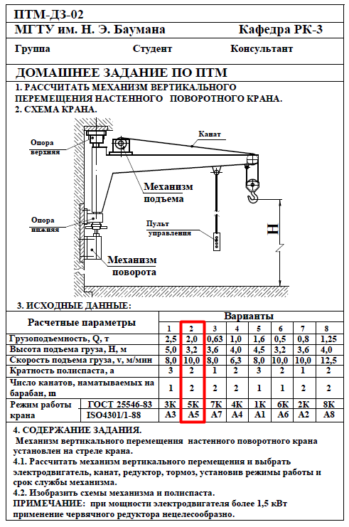 Для студентов МГТУ им. Н.Э.Баумана по предмету Подъёмно-транспортные машины (ПТМ)Расчёт механизма подъёмно-транспортной машины (ПТМ)Расчёт механизма подъёмно-транспортной машины (ПТМ)