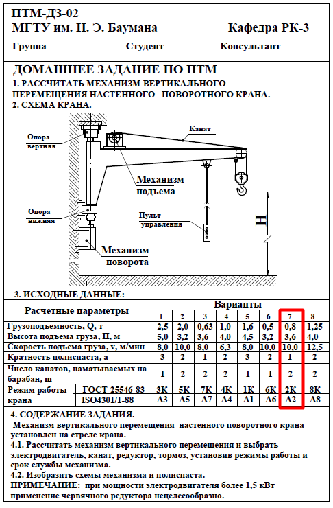 Для студентов МГТУ им. Н.Э.Баумана по предмету Подъёмно-транспортные машины (ПТМ)Расчёт механизма подъёмно-транспортной машины (ПТМ)Расчёт механизма подъёмно-транспортной машины (ПТМ)