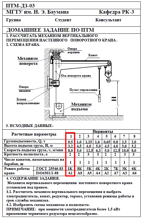 Для студентов МГТУ им. Н.Э.Баумана по предмету Подъёмно-транспортные машины (ПТМ)Расчёт механизма подъёмно-транспортной машины (ПТМ)Расчёт механизма подъёмно-транспортной машины (ПТМ)