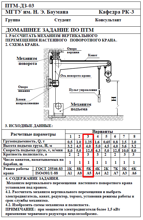 Для студентов МГТУ им. Н.Э.Баумана по предмету Подъёмно-транспортные машины (ПТМ)Расчёт механизма подъёмно-транспортной машины (ПТМ)Расчёт механизма подъёмно-транспортной машины (ПТМ)