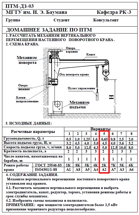 Для студентов МГТУ им. Н.Э.Баумана по предмету Подъёмно-транспортные машины (ПТМ)Расчёт механизма подъёмно-транспортной машины (ПТМ)Расчёт механизма подъёмно-транспортной машины (ПТМ)