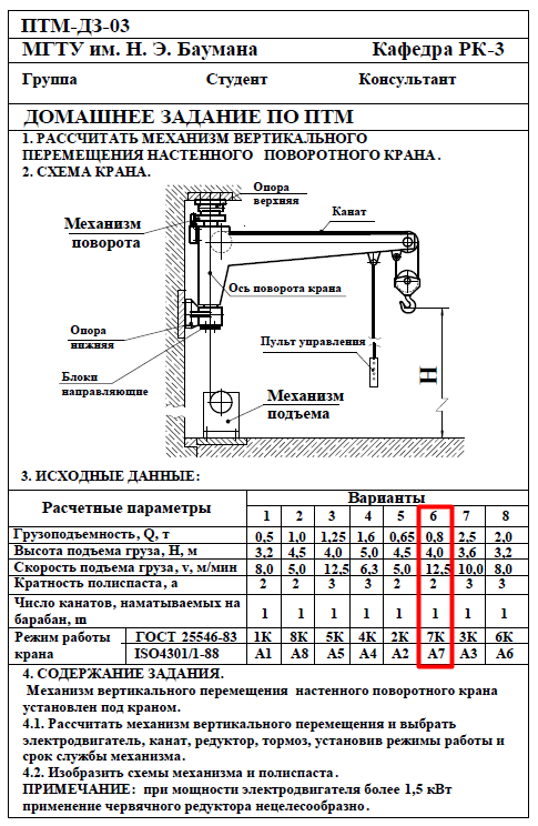 Для студентов МГТУ им. Н.Э.Баумана по предмету Подъёмно-транспортные машины (ПТМ)Расчёт механизма подъёмно-транспортной машины (ПТМ)Расчёт механизма подъёмно-транспортной машины (ПТМ)