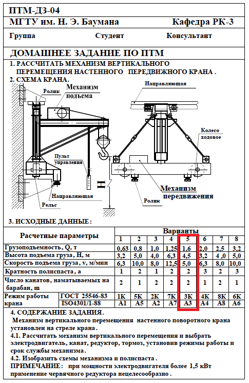 Для студентов МГТУ им. Н.Э.Баумана по предмету Подъёмно-транспортные машины (ПТМ)Расчёт механизма подъёмно-транспортной машины (ПТМ)Расчёт механизма подъёмно-транспортной машины (ПТМ)