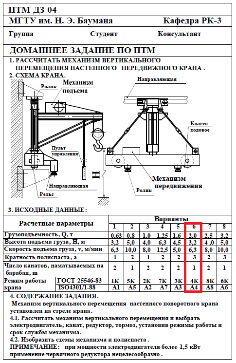 Для студентов МГТУ им. Н.Э.Баумана по предмету Подъёмно-транспортные машины (ПТМ)Расчёт механизма подъёмно-транспортной машины (ПТМ)Расчёт механизма подъёмно-транспортной машины (ПТМ)