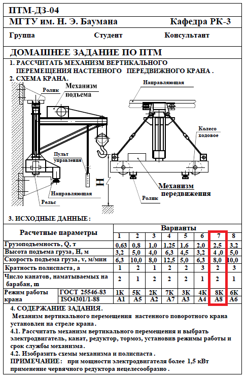 Для студентов МГТУ им. Н.Э.Баумана по предмету Подъёмно-транспортные машины (ПТМ)Расчёт механизма подъёмно-транспортной машины (ПТМ)Расчёт механизма подъёмно-транспортной машины (ПТМ)