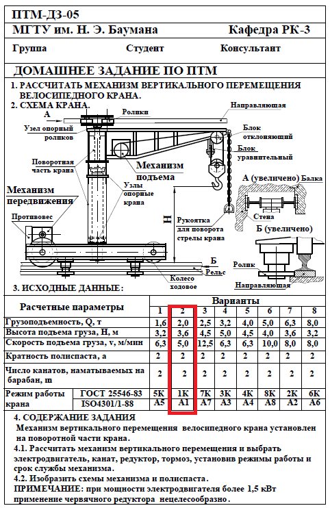 Для студентов МГТУ им. Н.Э.Баумана по предмету Подъёмно-транспортные машины (ПТМ)Расчёт механизма подъёмно-транспортной машины (ПТМ)Расчёт механизма подъёмно-транспортной машины (ПТМ)