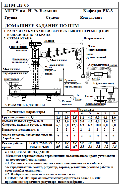 Для студентов МГТУ им. Н.Э.Баумана по предмету Подъёмно-транспортные машины (ПТМ)Расчёт механизма подъёмно-транспортной машины (ПТМ)Расчёт механизма подъёмно-транспортной машины (ПТМ)