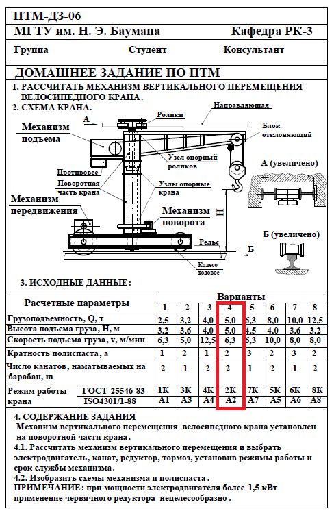 Для студентов МГТУ им. Н.Э.Баумана по предмету Подъёмно-транспортные машины (ПТМ)Расчёт механизма подъёмно-транспортной машины (ПТМ)Расчёт механизма подъёмно-транспортной машины (ПТМ)