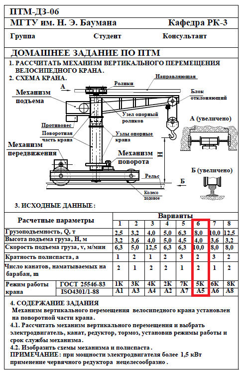 Для студентов МГТУ им. Н.Э.Баумана по предмету Подъёмно-транспортные машины (ПТМ)Расчёт механизма подъёмно-транспортной машины (ПТМ)Расчёт механизма подъёмно-транспортной машины (ПТМ)