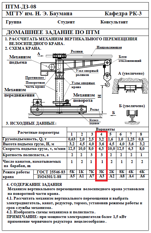 Для студентов МГТУ им. Н.Э.Баумана по предмету Подъёмно-транспортные машины (ПТМ)Расчёт механизма подъёмно-транспортной машины (ПТМ)Расчёт механизма подъёмно-транспортной машины (ПТМ)