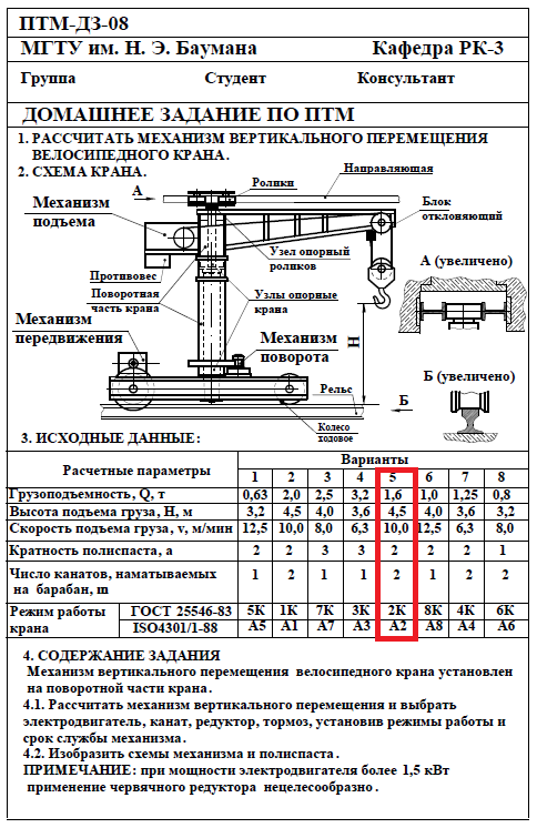 Для студентов МГТУ им. Н.Э.Баумана по предмету Подъёмно-транспортные машины (ПТМ)Расчёт механизма подъёмно-транспортной машины (ПТМ)Расчёт механизма подъёмно-транспортной машины (ПТМ)