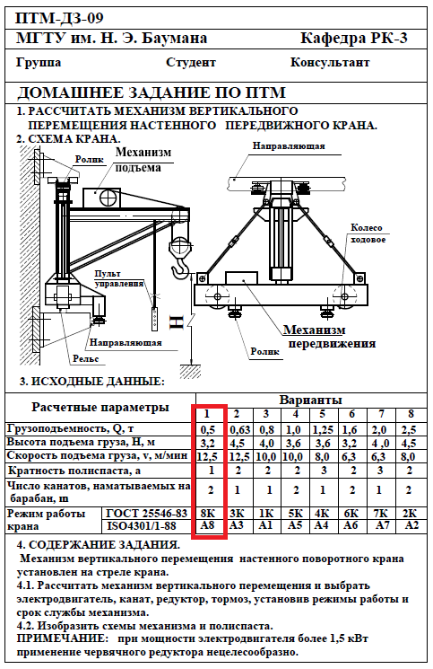 Для студентов МГТУ им. Н.Э.Баумана по предмету Подъёмно-транспортные машины (ПТМ)Расчёт механизма подъёмно-транспортной машины (ПТМ)Расчёт механизма подъёмно-транспортной машины (ПТМ)