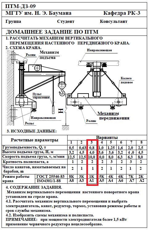 Для студентов МГТУ им. Н.Э.Баумана по предмету Подъёмно-транспортные машины (ПТМ)Расчёт механизма подъёмно-транспортной машины (ПТМ)Расчёт механизма подъёмно-транспортной машины (ПТМ)