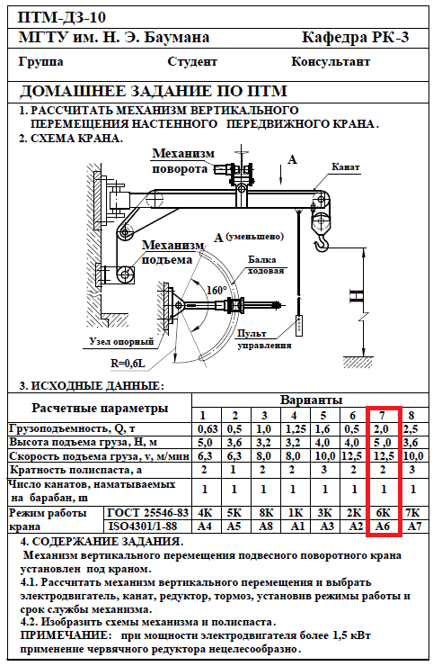 Для студентов МГТУ им. Н.Э.Баумана по предмету Подъёмно-транспортные машины (ПТМ)Расчёт механизма подъёмно-транспортной машины (ПТМ)Расчёт механизма подъёмно-транспортной машины (ПТМ)