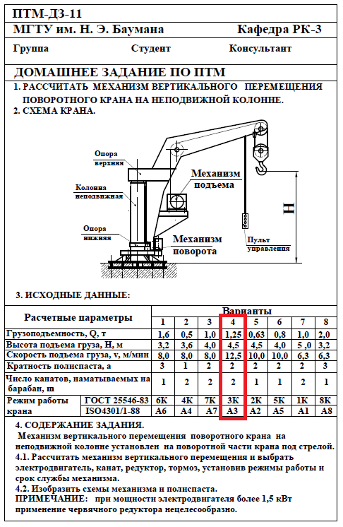 Для студентов МГТУ им. Н.Э.Баумана по предмету Подъёмно-транспортные машины (ПТМ)Расчёт механизма подъёмно-транспортной машины (ПТМ)Расчёт механизма подъёмно-транспортной машины (ПТМ)