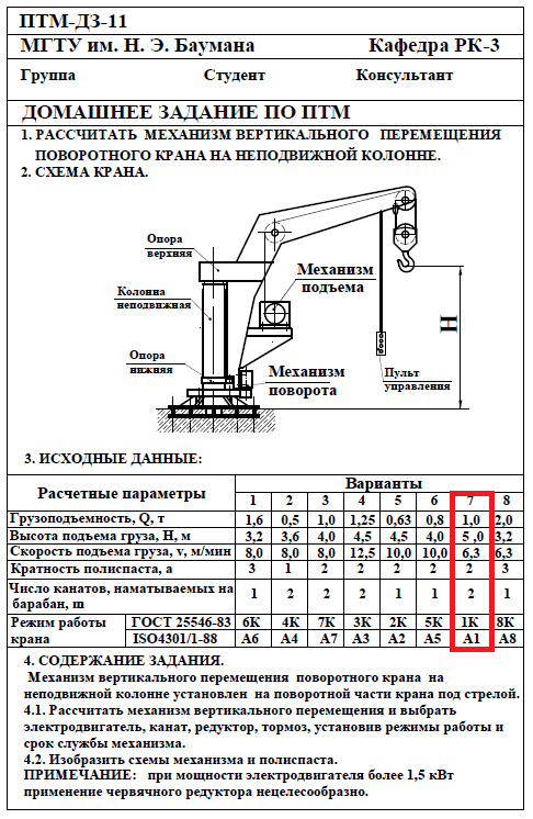 Для студентов МГТУ им. Н.Э.Баумана по предмету Подъёмно-транспортные машины (ПТМ)Расчёт механизма подъёмно-транспортной машины (ПТМ)Расчёт механизма подъёмно-транспортной машины (ПТМ)