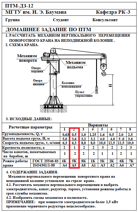 Для студентов МГТУ им. Н.Э.Баумана по предмету Подъёмно-транспортные машины (ПТМ)Расчёт механизма подъёмно-транспортной машины (ПТМ)Расчёт механизма подъёмно-транспортной машины (ПТМ)