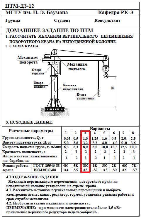 Для студентов МГТУ им. Н.Э.Баумана по предмету Подъёмно-транспортные машины (ПТМ)Расчёт механизма подъёмно-транспортной машины (ПТМ)Расчёт механизма подъёмно-транспортной машины (ПТМ)