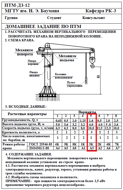 Для студентов МГТУ им. Н.Э.Баумана по предмету Подъёмно-транспортные машины (ПТМ)Расчёт механизма подъёмно-транспортной машины (ПТМ)Расчёт механизма подъёмно-транспортной машины (ПТМ)