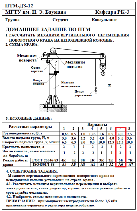 Для студентов МГТУ им. Н.Э.Баумана по предмету Подъёмно-транспортные машины (ПТМ)Расчёт механизма подъёмно-транспортной машины (ПТМ)Расчёт механизма подъёмно-транспортной машины (ПТМ)