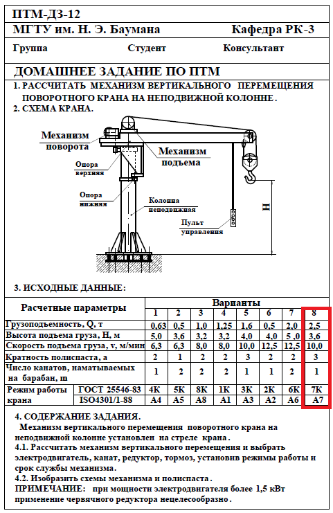 Для студентов МГТУ им. Н.Э.Баумана по предмету Подъёмно-транспортные машины (ПТМ)Расчёт механизма подъёмно-транспортной машины (ПТМ)Расчёт механизма подъёмно-транспортной машины (ПТМ)