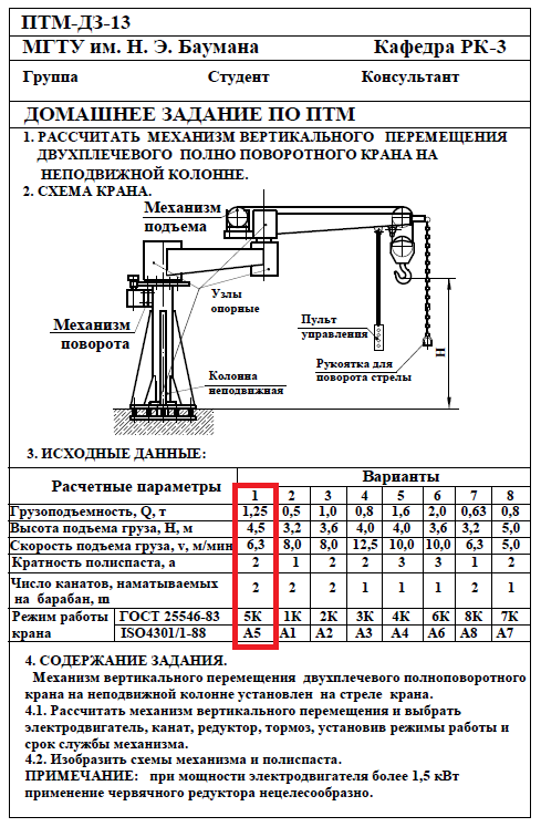 Для студентов МГТУ им. Н.Э.Баумана по предмету Подъёмно-транспортные машины (ПТМ)Расчёт механизма подъёмно-транспортной машины (ПТМ)Расчёт механизма подъёмно-транспортной машины (ПТМ)