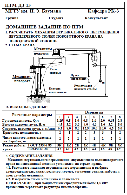 Для студентов МГТУ им. Н.Э.Баумана по предмету Подъёмно-транспортные машины (ПТМ)Расчёт механизма подъёмно-транспортной машины (ПТМ)Расчёт механизма подъёмно-транспортной машины (ПТМ)